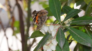 | 2019年3月26日 アセビで吸蜜する越冬アカタテハ |