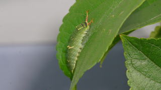 エノキ葉上に静止している中齢幼虫 |
