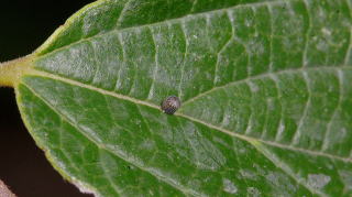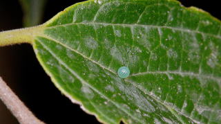エノキの葉に産み付けられた卵
