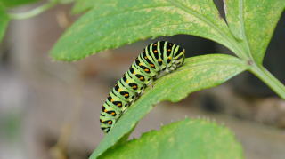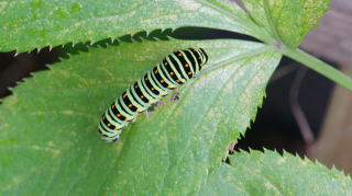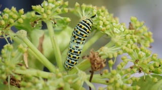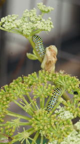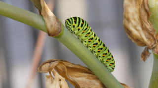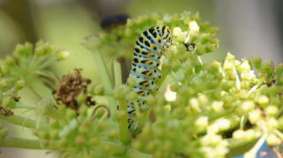 | 2019年10月8日 アシタバ蕾を食べるキアゲハ中齢幼虫 |