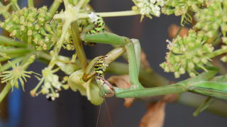 | 2019年11月2日 カマキリに捕食されるキアゲハ幼虫 |