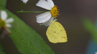 シロノセンダングサで吸蜜するキタキチョウ秋型♀ |
