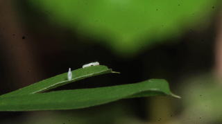 孵化直後の初齢幼虫と卵殻