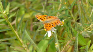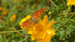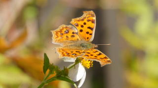 | 2016年11月5日 シロノセンダングサに来たキタテハ秋型 |
