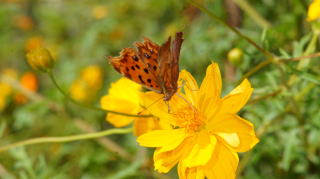 | 2016年11月26日 シロノセンダングサで吸蜜するキタテハ秋型 |