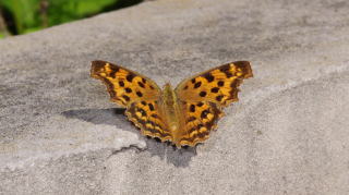 | 2017年7月17日 ブロック塀に止まったキタテハ |