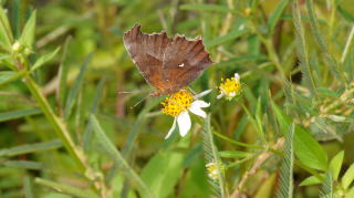 2016年11月4日 シロノセンダングサで吸蜜するキタテハ秋型 |