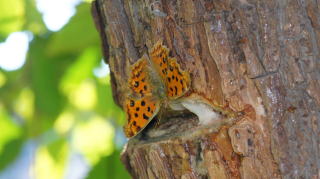 2018年10月5日 ハルニレの幹に止まったキタテハ夏型 |