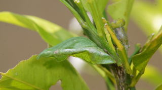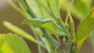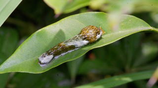 | 2017年5月28日 ミカンのそばのコクサギ葉上で休む中齢幼虫 |