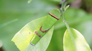 2017年6月3日 ミカン葉上で休むクロアゲハ中齢幼虫 |