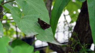 | 2011年8月7日 庭のアマミイケマの葉に止まったクロセセリ |