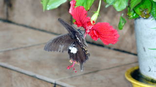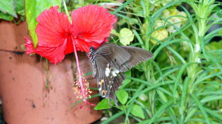 | 2017年6月25日 ハイビスカスで吸蜜するモンキアゲハ♂ |