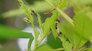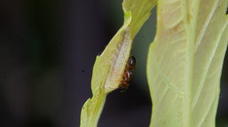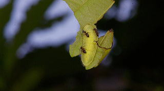 | 2016年6月26日 ナラガシワを食べるムラサキシジミ幼虫 |