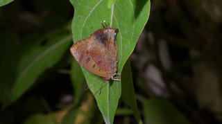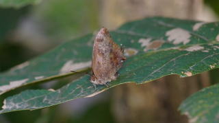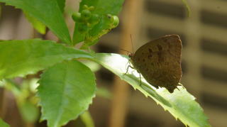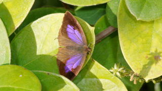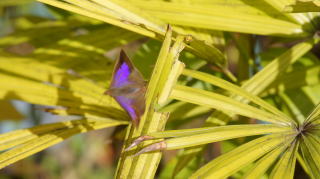 2017年11月1日 ギョボクの葉で日光浴するムラサキツバメ♀ |