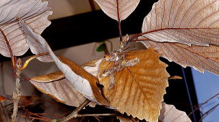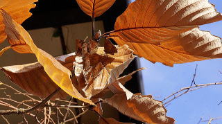 | 2016年12月18日 ナラガシワ葉上で集団越冬中のムラサキツバメ |