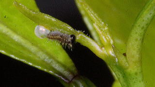 | 2019年4月14日 孵化途中のナミアゲハ初齢幼虫 |
