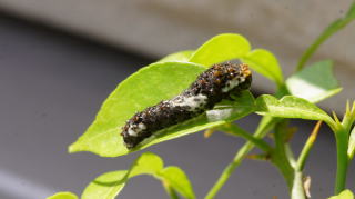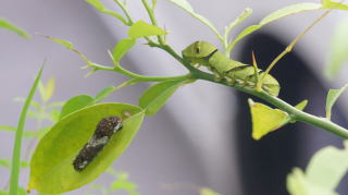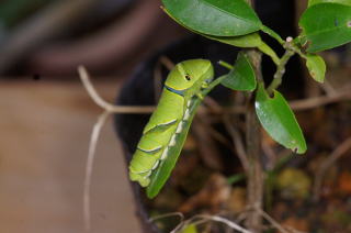 | 2023年4月28日 ミカンを食べるナミアゲハ中齢幼虫 |