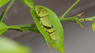 | 2023年4月30日 ミカンを食べるナミアゲハ中齢幼虫 |