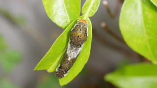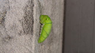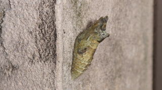 2023年5月11日 門柱で前蛹になったナミアゲハ |