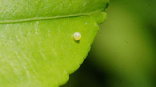 2023年8月1日 レモンに産み付けられたナミアゲハ卵 画像をクリックすると拡大して見られます |