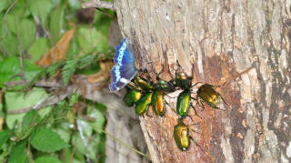 | 2017年7月1日 ハルニレの樹液に来たルリタテハとアカタテハ |
