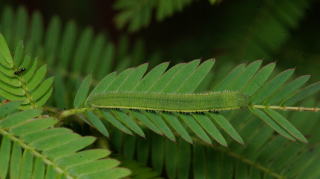 カワラケツメイを食べるツマグロキチョウ幼虫