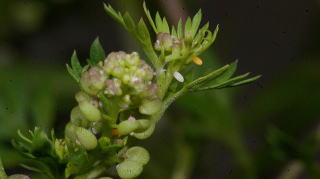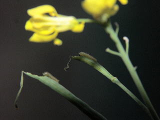 庭のハマハタザオを食べるツマキチョウ幼虫 |