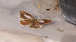 | 2018年10月21日 地面に止まったウラギンシジミ♂ |