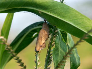 トウワタ葉裏で見つけた蛹