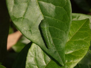 | 2005年5月29日 ハマセンダンを食べる若齢幼虫 |