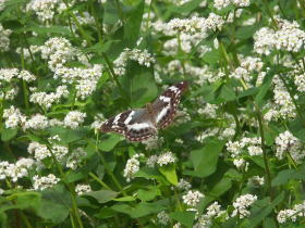 ソバで吸蜜するメスグロヒョウモン♀ |