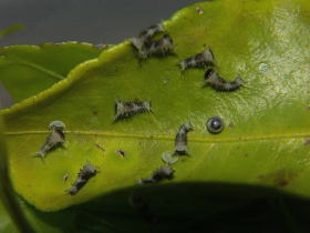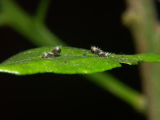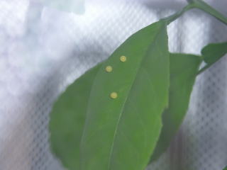 ナガサキアゲハ卵と孵化直後の幼虫 |
